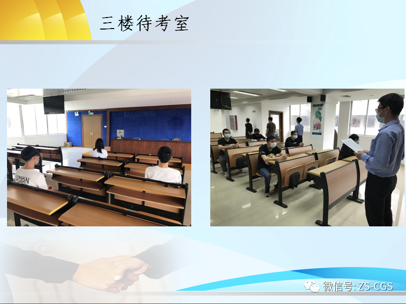 4、待考室就坐等待考试(相隔一米以上),等待工作人员通知方可排队